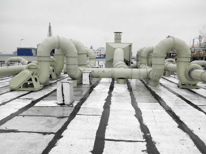 對(duì)于一般的普通建筑,若室內(nèi)排出的氣體沒(méi)有腐蝕性,通風(fēng)管道可以采用鍍鋅鋼板,對(duì)于產(chǎn)生有腐蝕性氣體的實(shí)驗(yàn)室,風(fēng)管應(yīng)采用耐腐蝕材料的PVC風(fēng)管或玻璃鋼風(fēng)管。在一般的實(shí)驗(yàn)室通風(fēng)工程,室內(nèi)大多采用PVC風(fēng)管、室外采用玻璃鋼風(fēng)管。對(duì)于室內(nèi)層高不足的實(shí)驗(yàn)室或采用大型風(fēng)管的實(shí)驗(yàn)室,一般采用矩形風(fēng)管,以便與現(xiàn)場(chǎng)空間匹配,在滿足風(fēng)管要求的前提下,盡量減小風(fēng)管占用空間。圓形風(fēng)管采用插件連接,矩形風(fēng)管采用法蘭方式連接,根據(jù)實(shí)際情況也可采用插件方式連接。